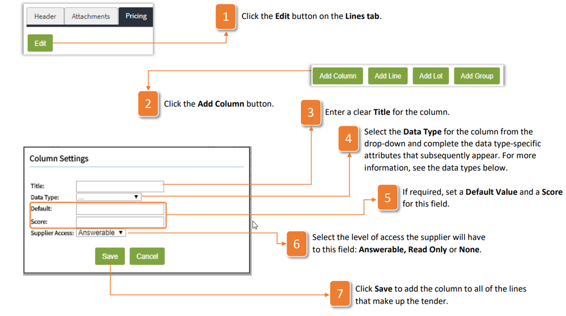 When creating the lines for your tender, you may wish to add extra columns of data. To add extra columns, follow the instructions below: