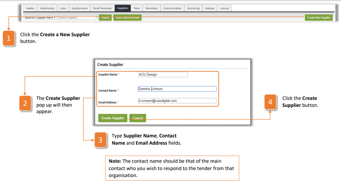 3. Type Supplier Name, Contact Name and Email Address fields.