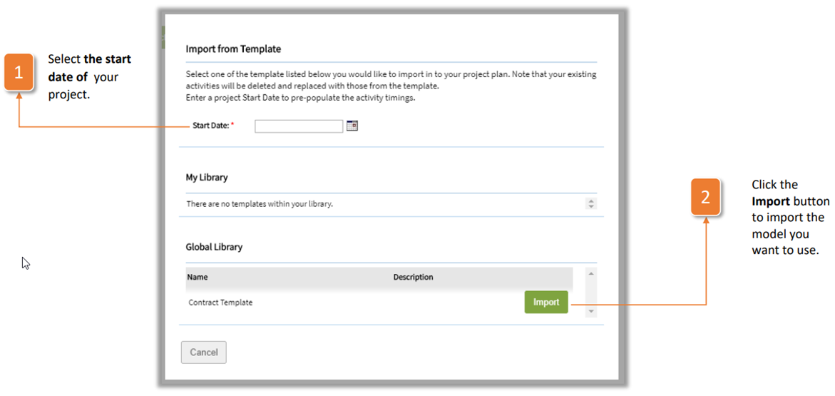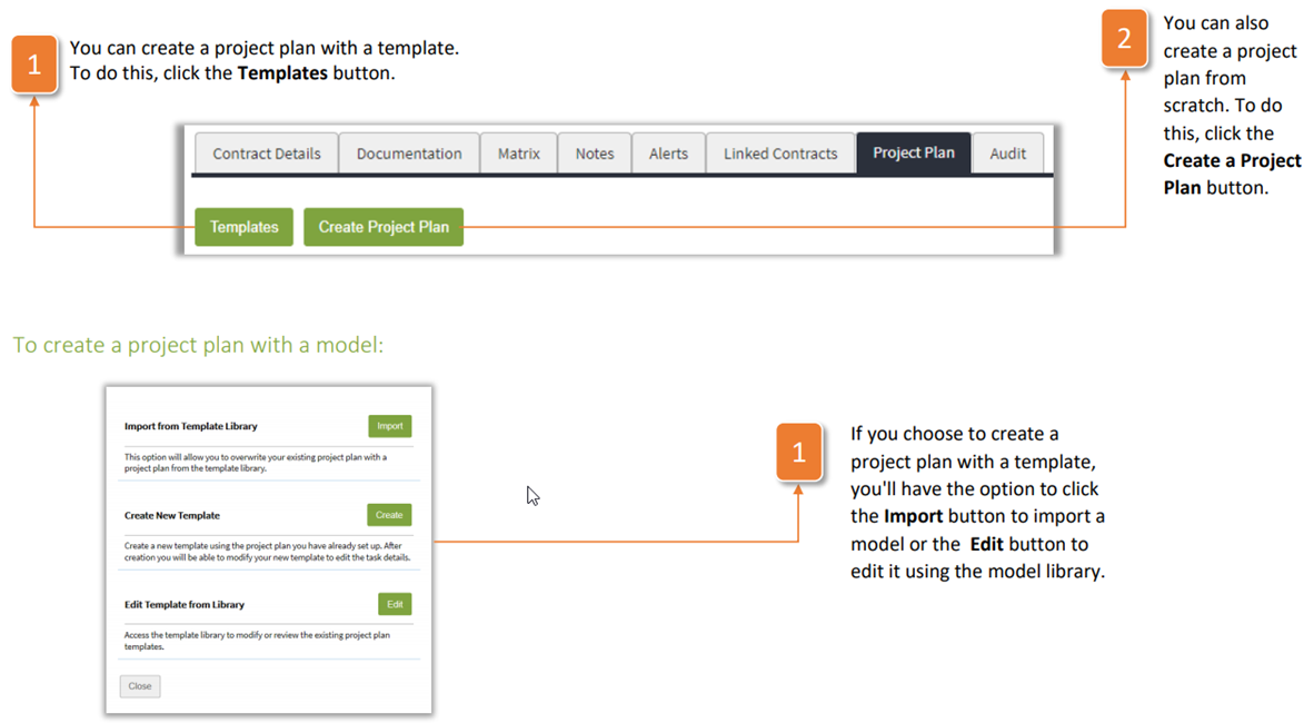 - If you choose to create a project plan with a template, you'll have the option to click the Import button to import a model or the Edit button to edit it using the model library
